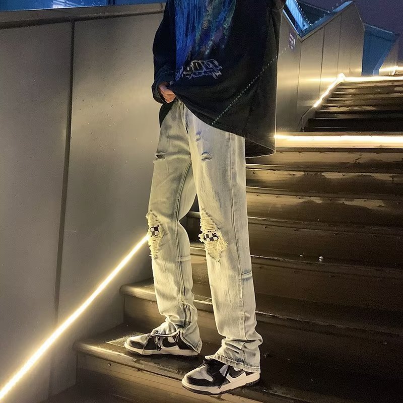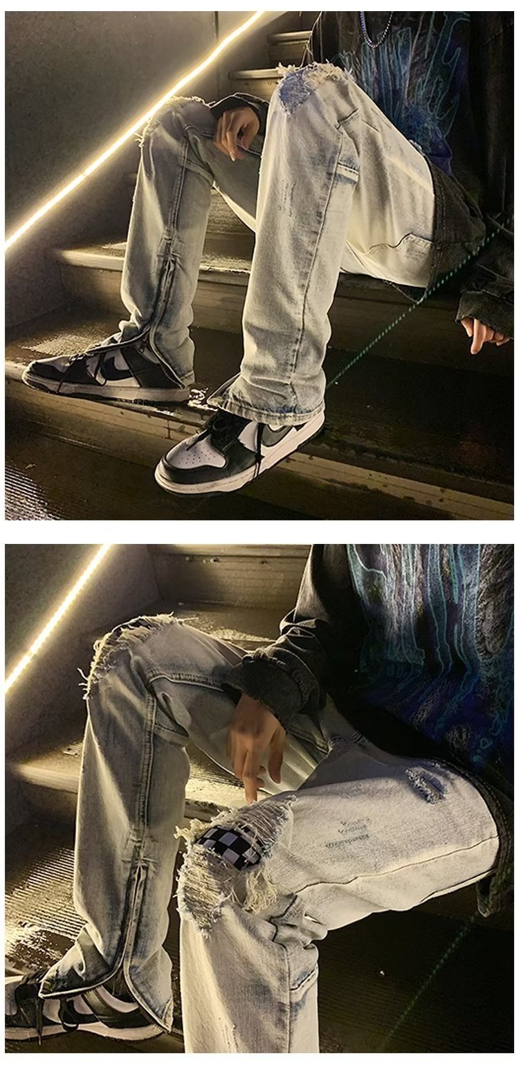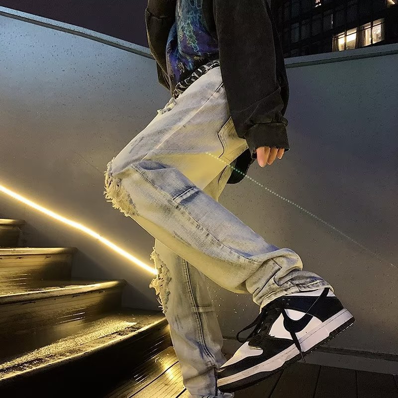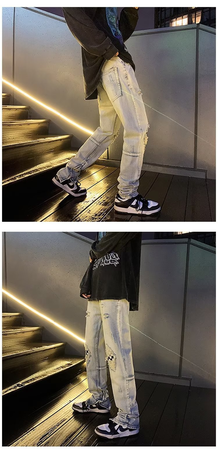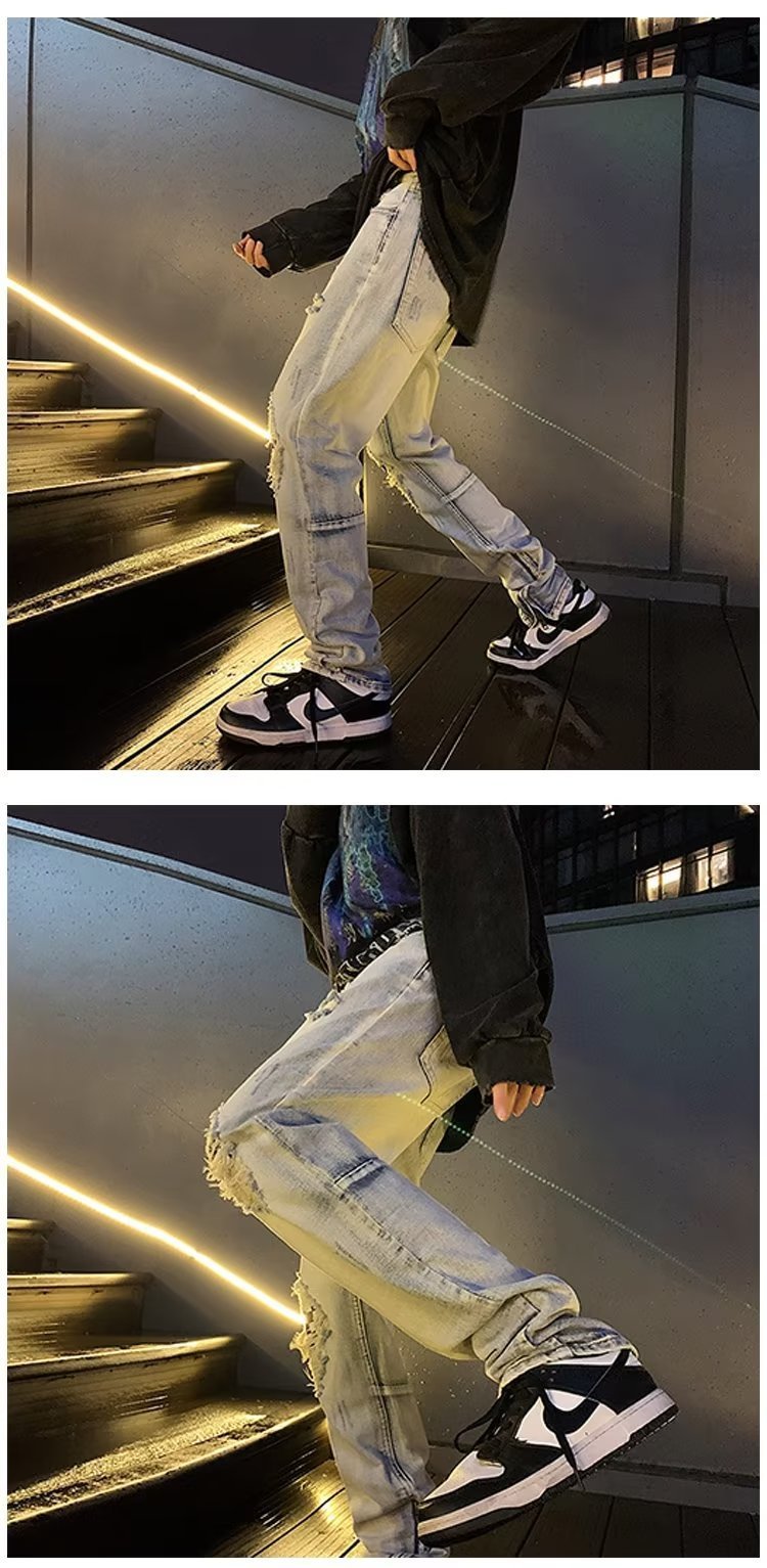 Trendy Ripped Jeans Men's American-style Retro Washed Distressed