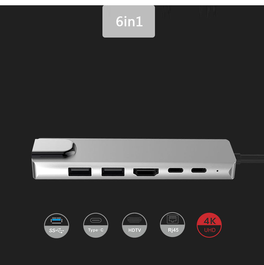 Type C To HDMI+USB3.0+PD 6 In 1 HUB Hub Rj45 Network Card Adapter
