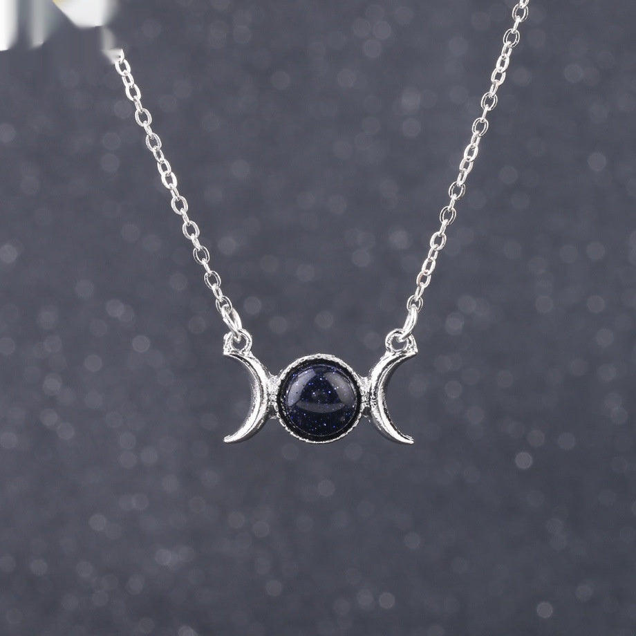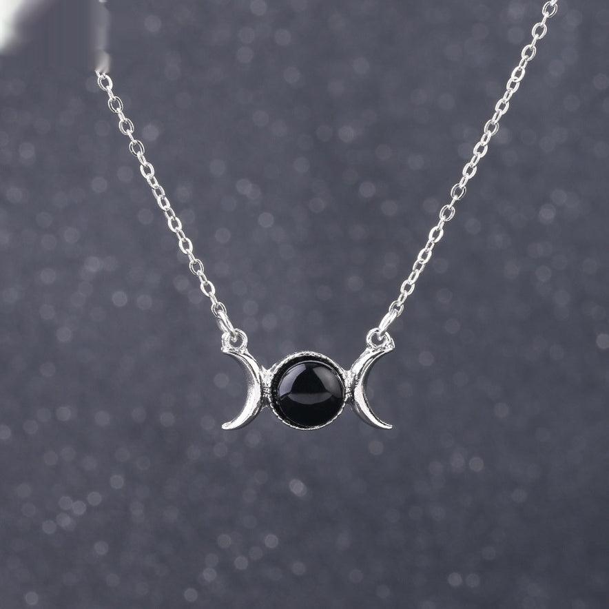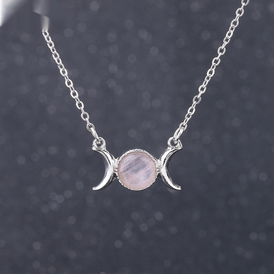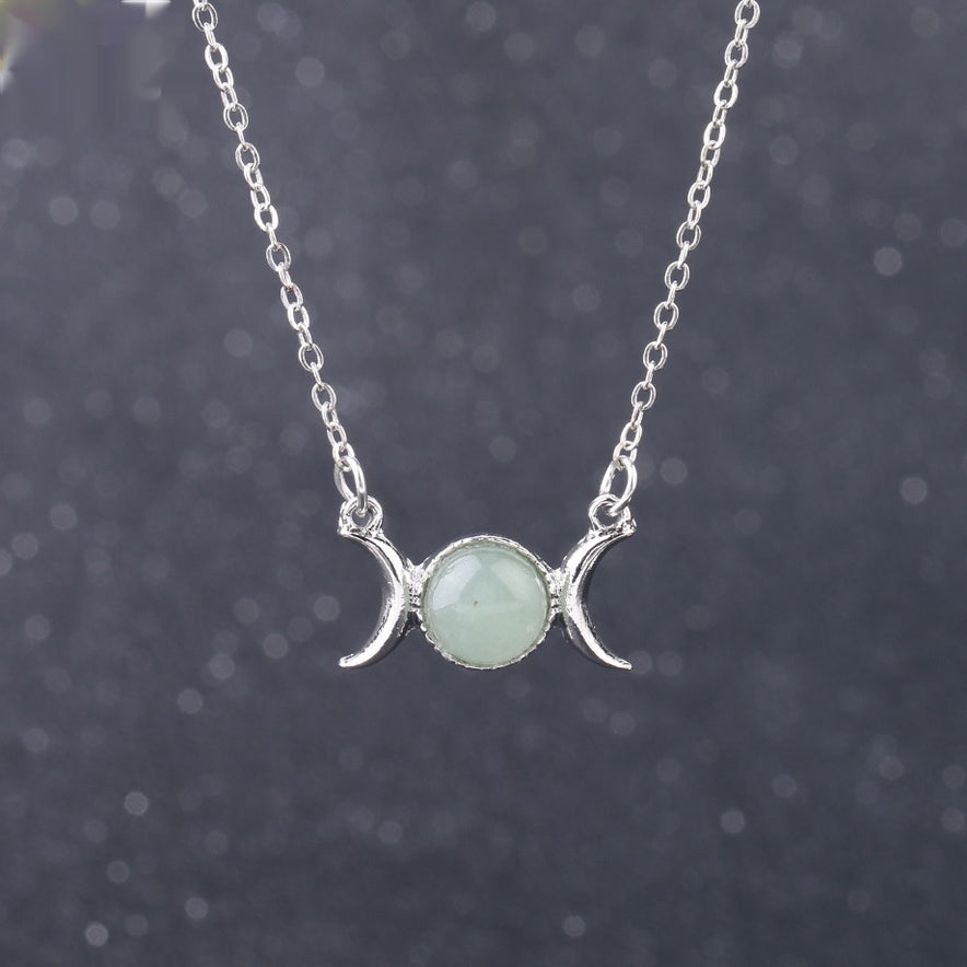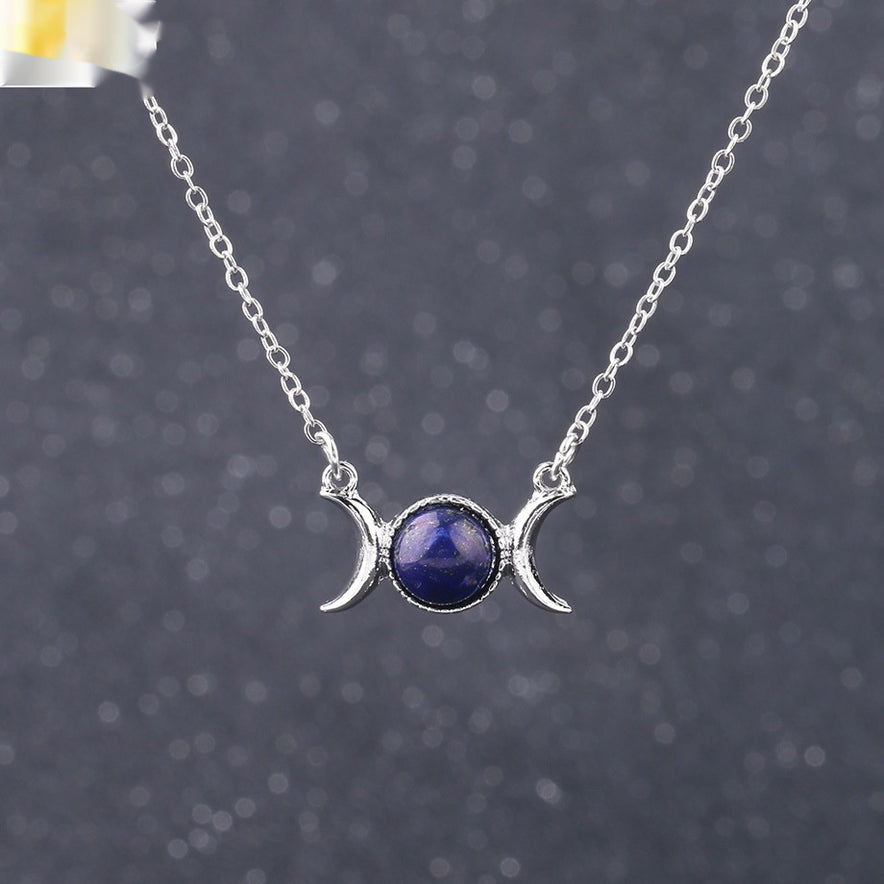Vintage Crescent Lock Bone Moon Sun Pendant Silver Women's Natural Stone Necklace