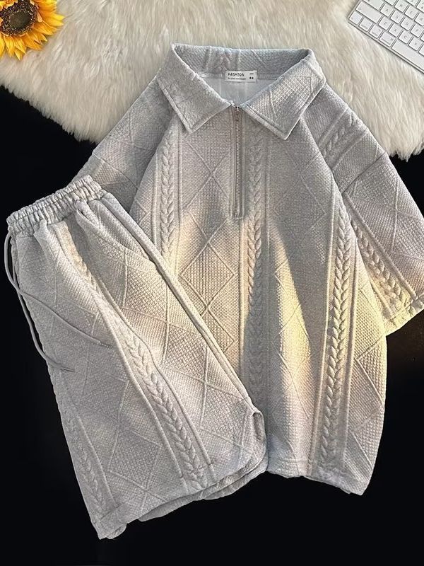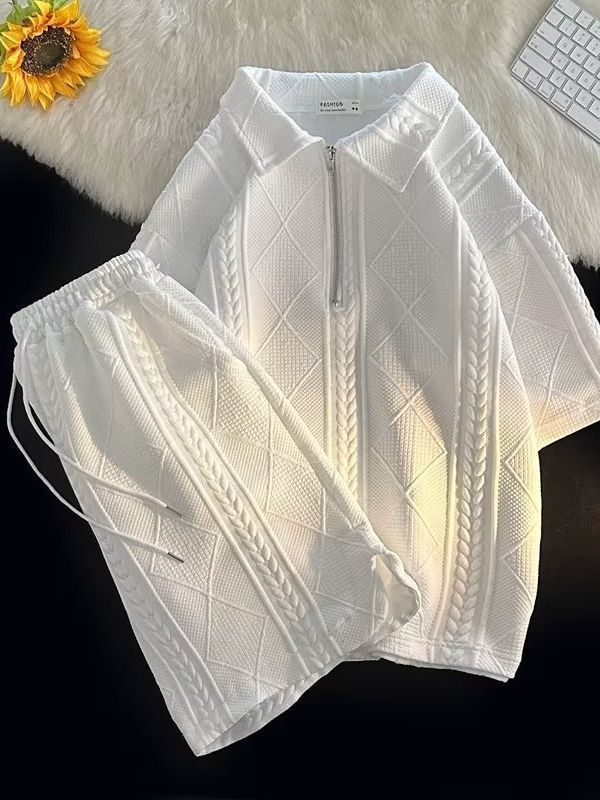 Waffle Polo Shirt Short-sleeved T-shirt Shorts Set