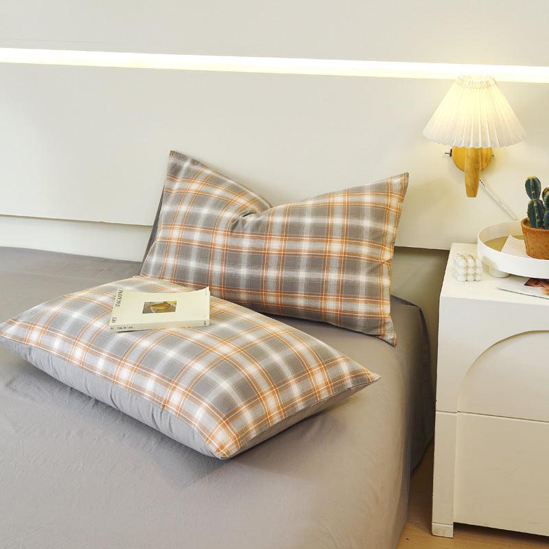 Washed Cotton Pillowcase Yarn-dyed Double-piece Types A And B Single Pillowcase