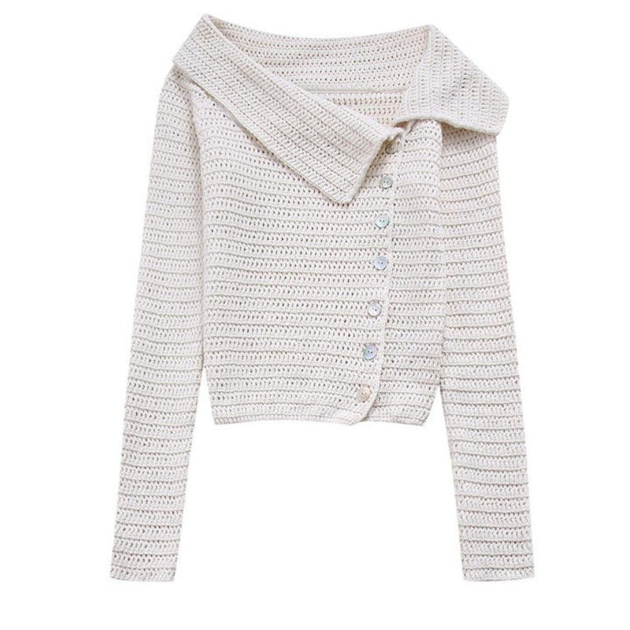 Women's Asymmetric Design Long Sleeve Diagonal Collar Sweater