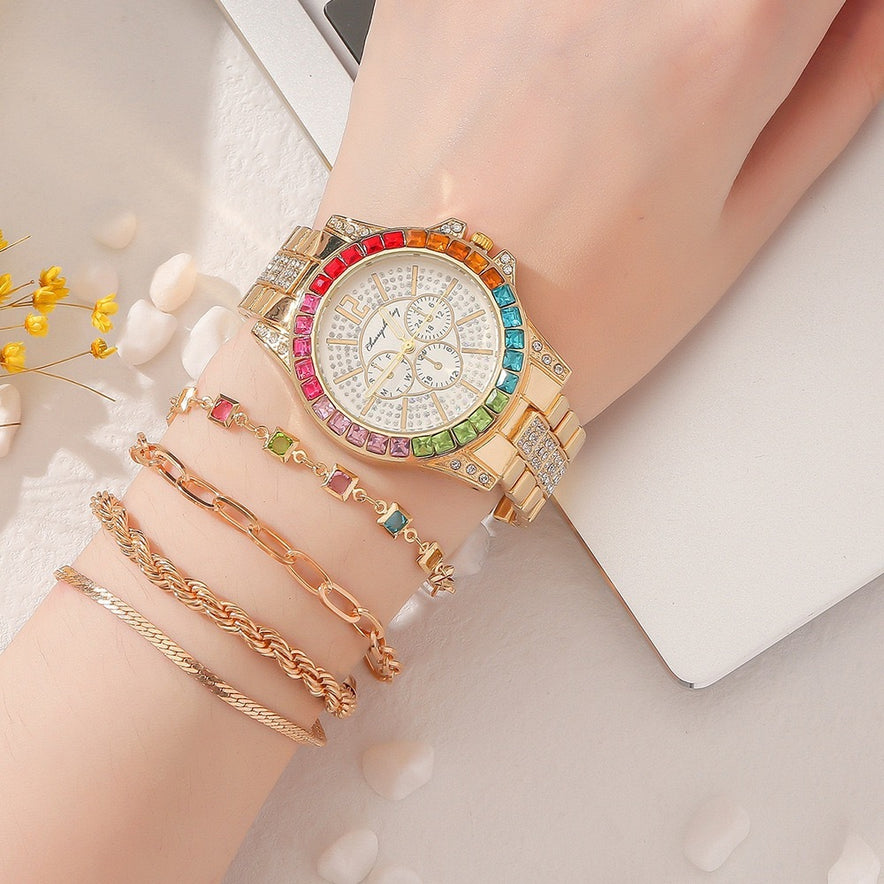 Women's Business Steel Belt Watch Inlaid Color Diamond Special Dial All-match Suit Quartz Watch