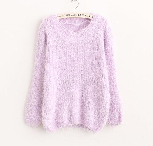 Women's Clothing Super Soft Candy Color No Pilling Mohair Crew Neck Pullover Sweater