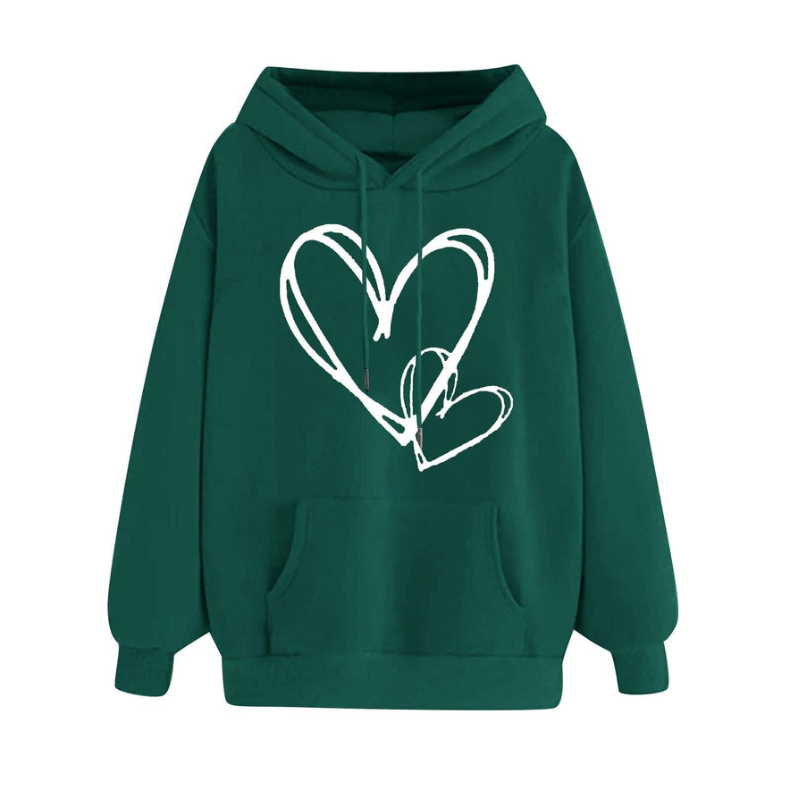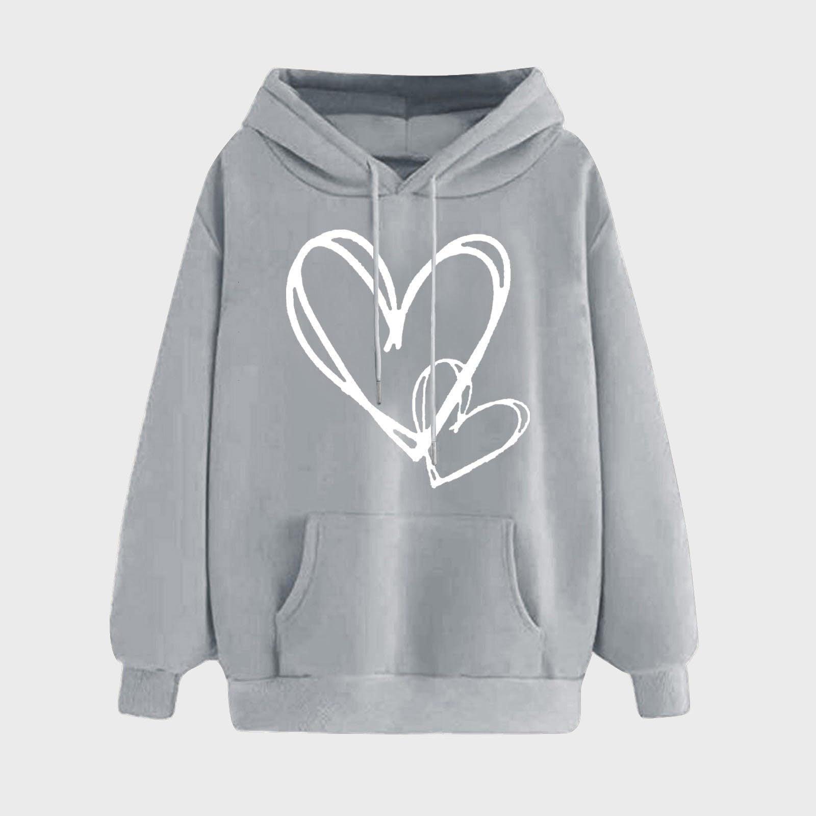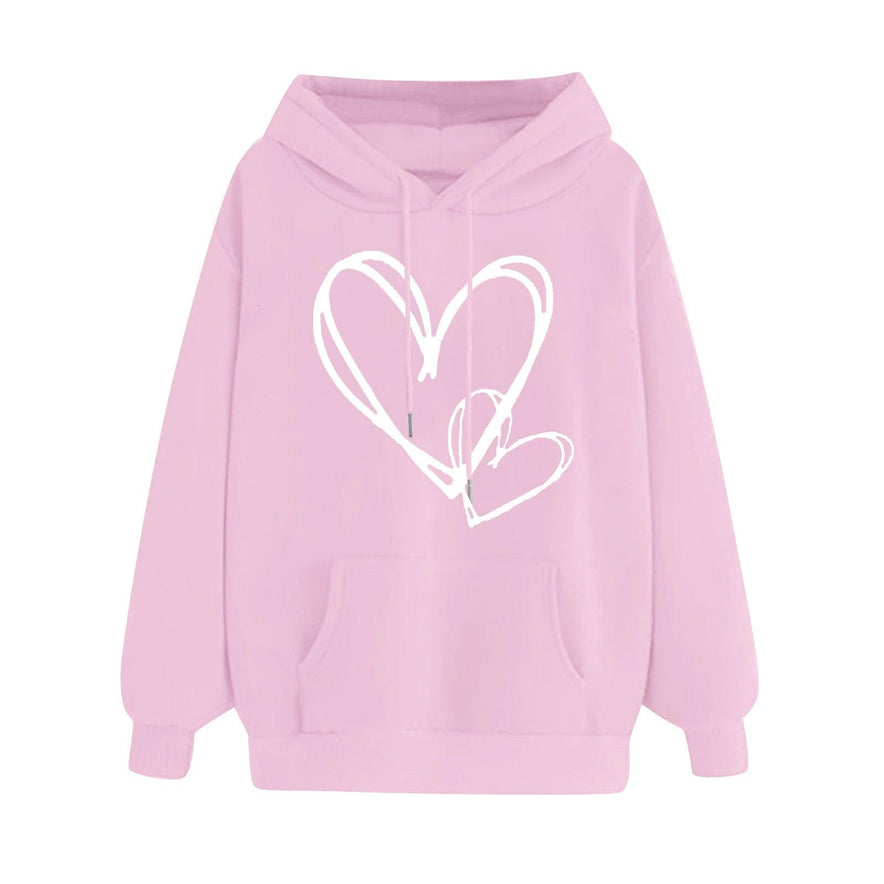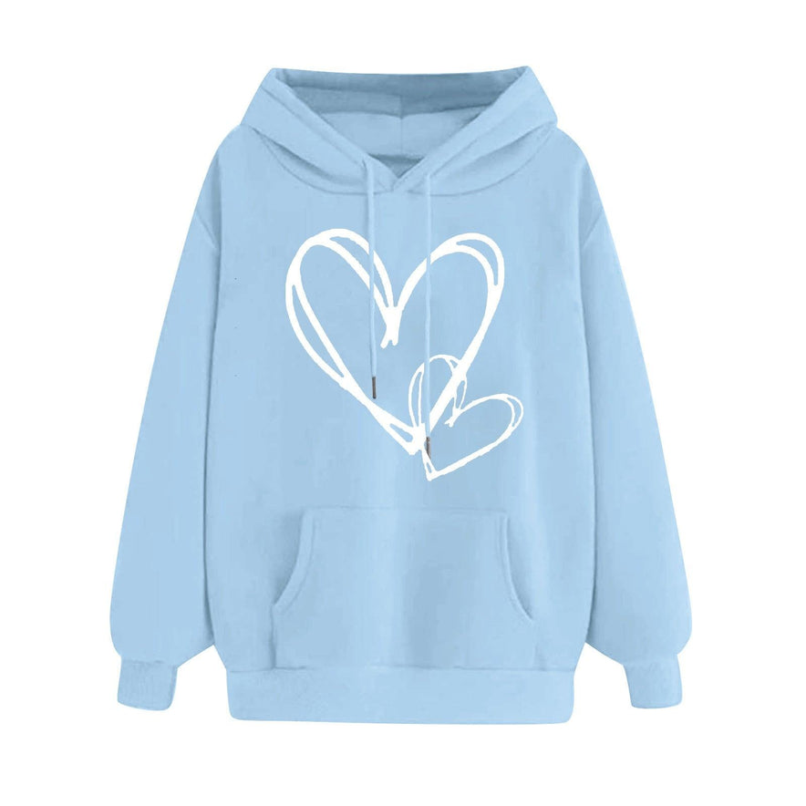 Women's Long-sleeved Hooded Heart Printing Couple's Shirts