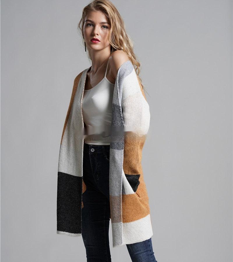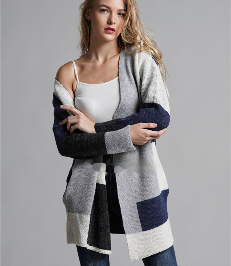 Women's Loose Long Sleeve Plus Size Contrast Color Sweater