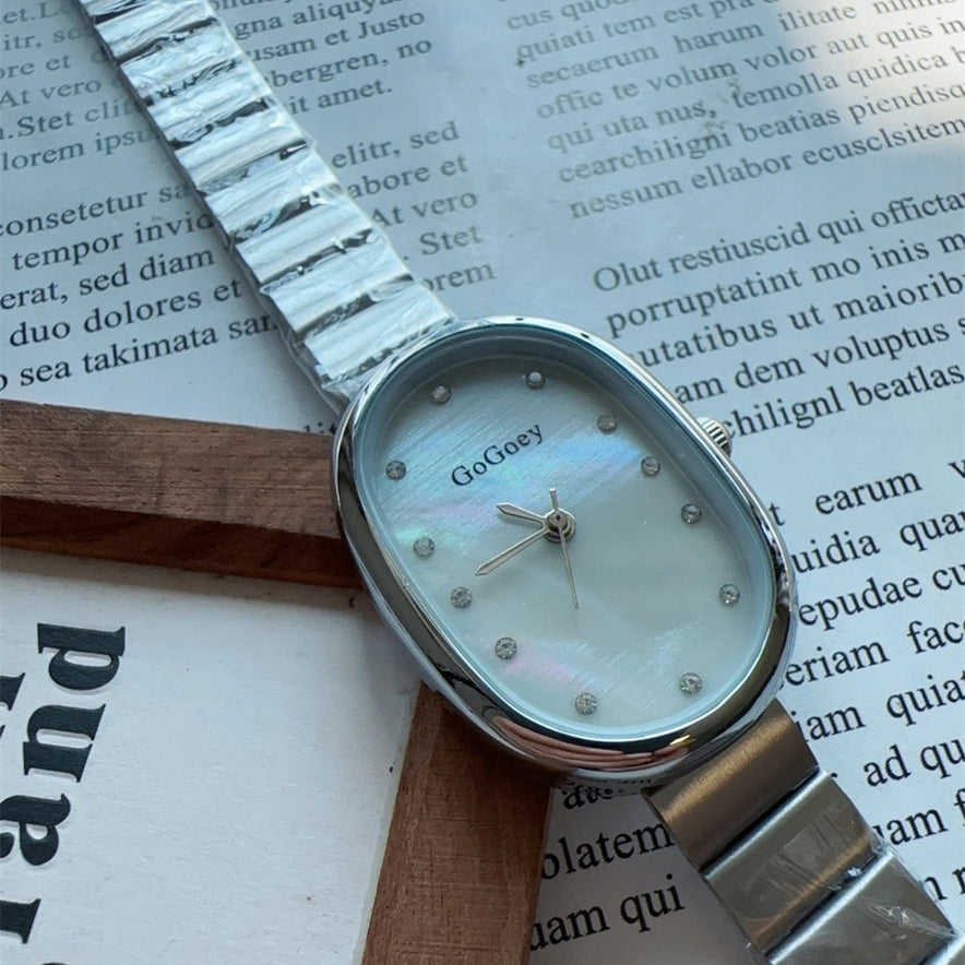 Women's Oval Disk Shell Surface Spot Drill Steel Belt Watch